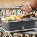 Barbecuing on your city balcony? The electric sister of our Carlo makes it possible! E-Carlo is a compact, portable barbecue that you can take anywhere. The Barbecook E-Carlo BBQ is small enough to put on the table or picnic rug, but large enough to serve a group of 4-6 people. E-Carlo features a simple control knob with three hit levels. That way, you decide how much energy your E-Carlo consumes! Thanks to the fast and even heat distribution, you effortlessly succeed in preparing every dish expertly. Turn the knob to the desired level and in just 5 minutes the grilling can begin. Thanks to the 1.5m long cable, you can place the barbecue wherever you want! The E-Carlo also comes with a handy carrying bag, allowing you to take it anywhere.