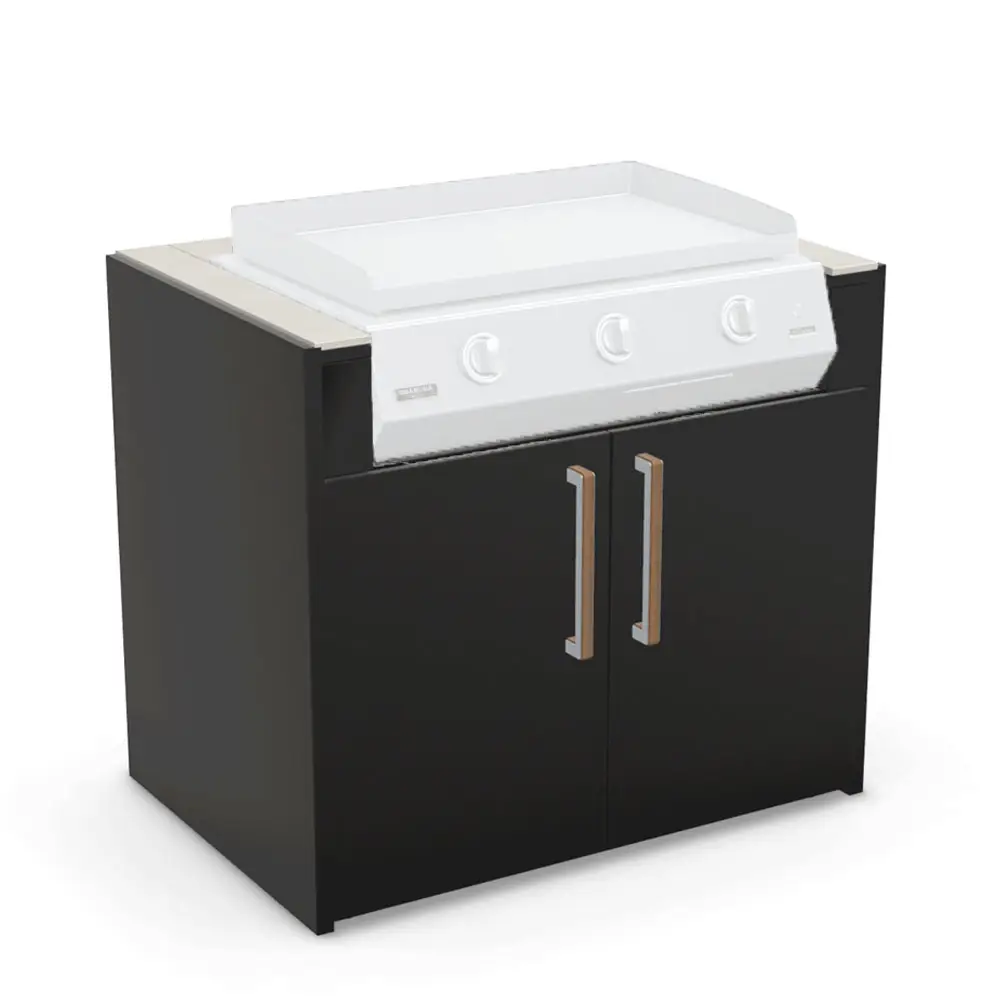 The Brabura KC 100 Plancha Iron Frost Cabinet seamlessly combines elegance and practicality. Thus making it an exceptional addition to any outdoor kitchen. Featuring a premium Neolith sintered stone countertop. This unit visually appealing and also highly resistant to heat, scratches, and stains, ensuring enduring beauty and performance.