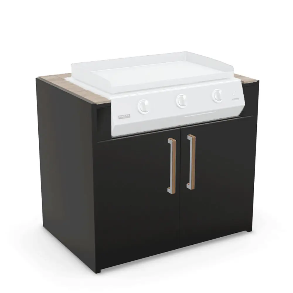 The Brabura KC 100 Plancha Summer Dala Cabinet seamlessly combines elegance and practicality. Thus making it an exceptional addition to any outdoor kitchen. Featuring a premium Neolith sintered stone countertop. This unit visually appealing and also highly resistant to heat, scratches, and stains, ensuring enduring beauty and performance.