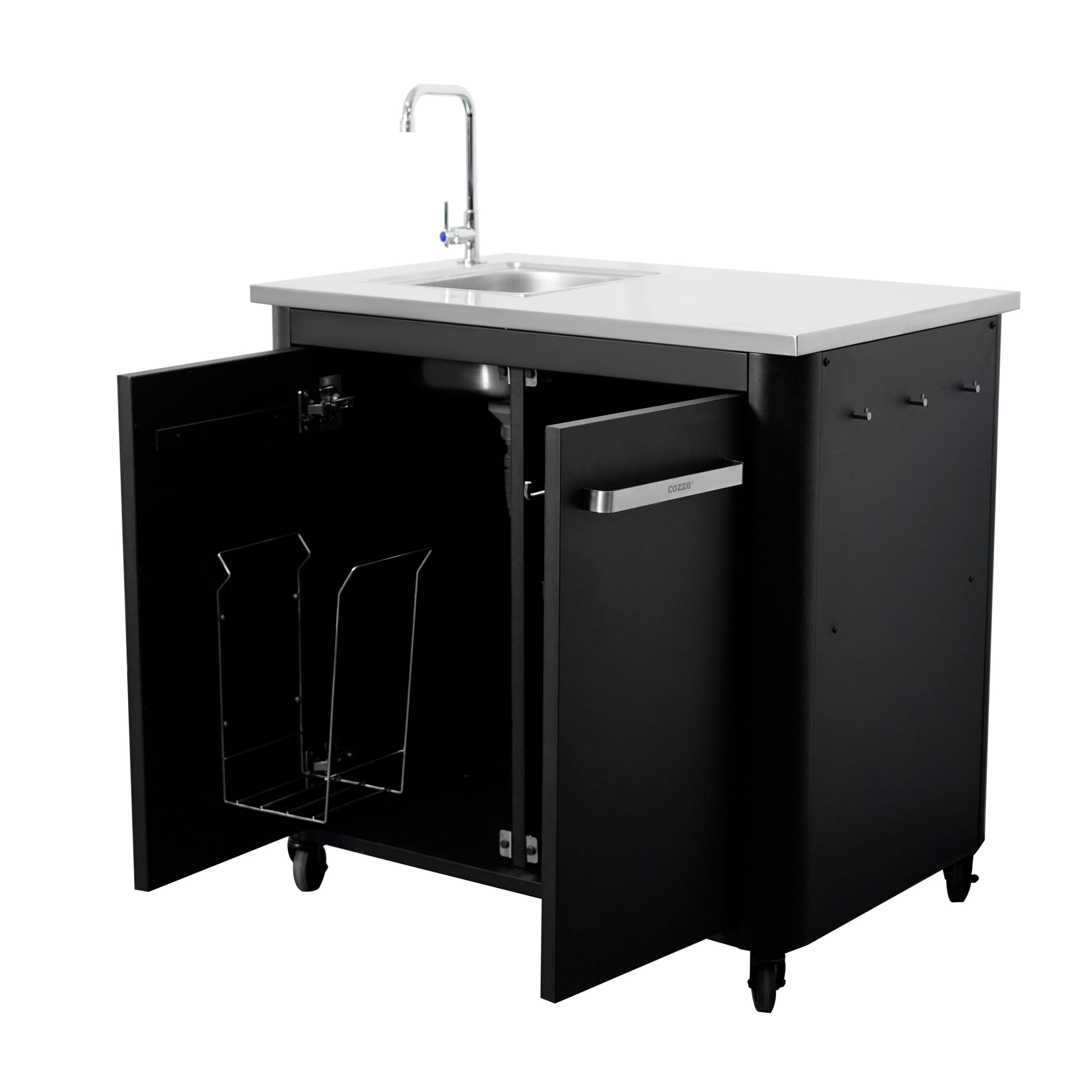 The Cozze 90 with sink combines smart design and functionality in a space-saving format. Perfect for smaller outdoor areas, it features a sturdy work surface and an integrated sink for easy prep and clean-up. Whether you're grilling or baking, having water close at hand makes your outdoor cooking experience even more seamless.