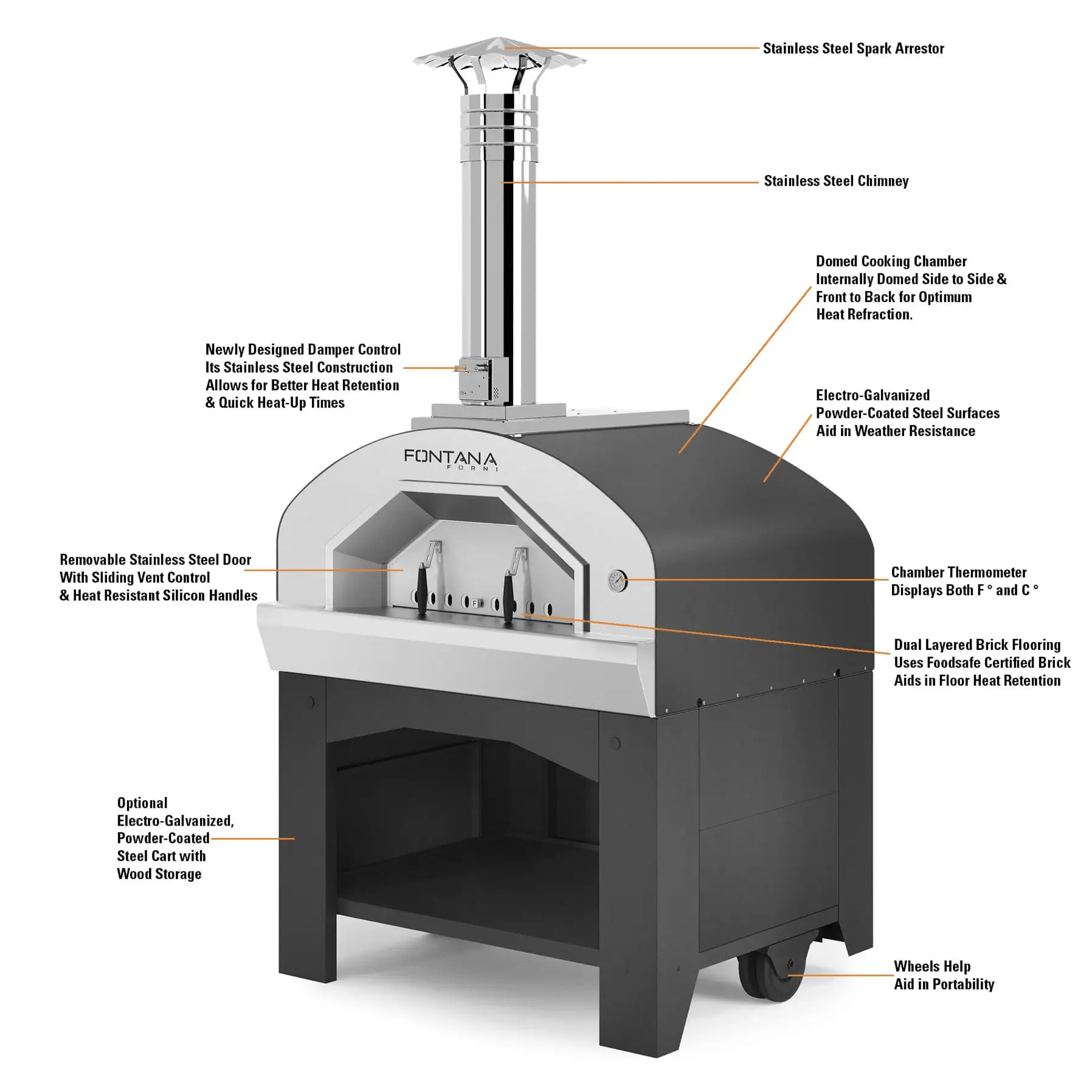 ∙ Multi-function: every kind of cooking and dish can be cooked in an oven Fontana Specialist and its flavours will be exalted by the flame and the wood embers