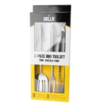 The GRLLR 3-Pieces Toolset is a premium stainless steel BBQ set. Includes: 1x BBQ tong 1x Pit fork 1x BBQ spatula