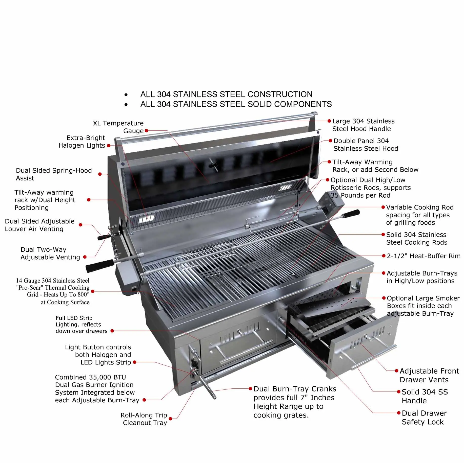 - Cooking grates are 10 mm 304 grade Stainless Steel