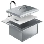 The Sunstone® Premium Drop-In Water Sink is constructed with 304 Stainless Steel. The Sink Package includes everything you need to get to started out right, Hot/Cold Chrome Plated Faucet, Matching Soap Dispenser, Cutting Board, Sink Basin Grid, 2 Inch Raised Cover w/Handle, and Kitchen Sized Drain. This Sink Model is consentingly one of Sunstone Top Rated and Highest Selling Products over 15 Years now, with rave reviews we have kept worked tirelessly to perfect the Sink from its original design for many years with its time-tested quality, you will surely experience Sunstone Quality redefined and make your new outdoor kitchen dream come to life.