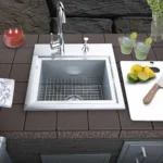- 304 Stainless Steel Interior & Exterior - Easy Drop-In Installation, great for thicker counters - Sturdy Raised Cover protects from the weather - Included Cutting Board, & Sink Basin Grid - Light Brushed Finished