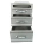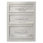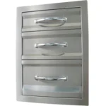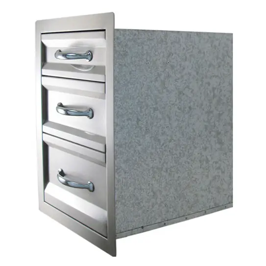 Sunstone® Premium Triple Drawer is exquisitely large sized with polished horizontal accents and was designed for the person that wants beautiful well finished drawer and an enhanced storage capacity. It can fit perfectly under your counter and you can make combinations of drawers side by side or match it with a Double or Simple drawer. With a bottom drawer that is higher than others, all your BBQ Tools, Sauces and Spices will be safe This Premium Drawer was designed to match with Sunstone® Premium Doors and to create a perfect complement to your outdoor kitchen. - Solid 16 and 20 Gauge 304 Stainless Steel - Secure Closing Weatherproof - Fully Sealed Drawer Box Specifications