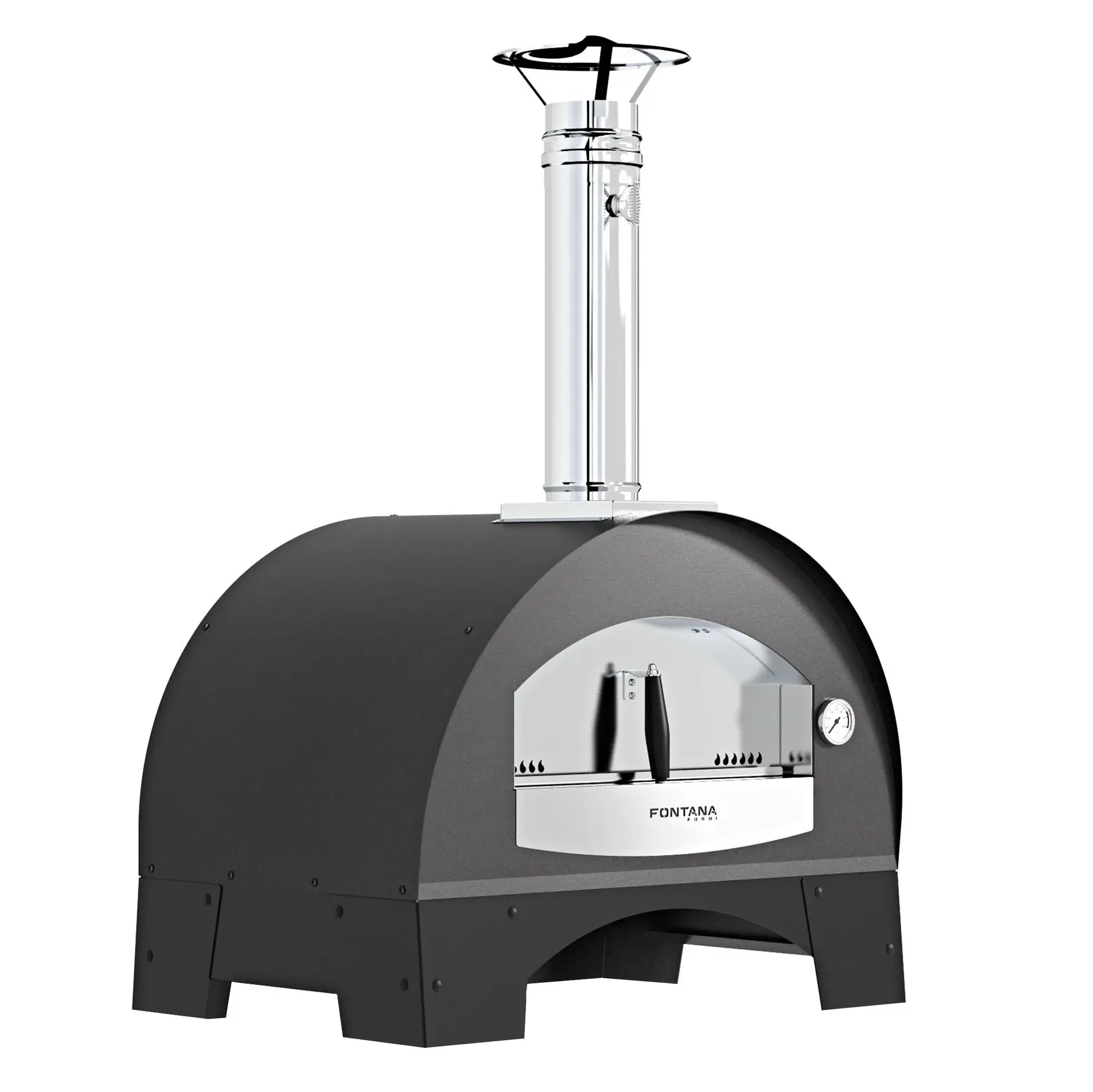 This Amalfi Oven has a 80×50 cm cooking chamber. Also provided with the oven is a wood-holder plate, flue pipe with adjustable smoke exit valve and chimney top. It has a closing door for the cooking chamber. The fire surface is made of high quality refractory chamotte. Perfect for food use. Furthermore, the internal structure is in stainless steel with paints that withstand high temperatures for the maximum resistance to heat, weather and rust. In addition, the cooking chamber consists of natural rock wool which allows to maintain temperature more efficiently and to avoid that the external structure becomes to hot.