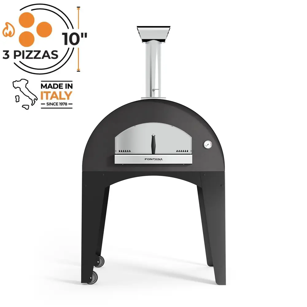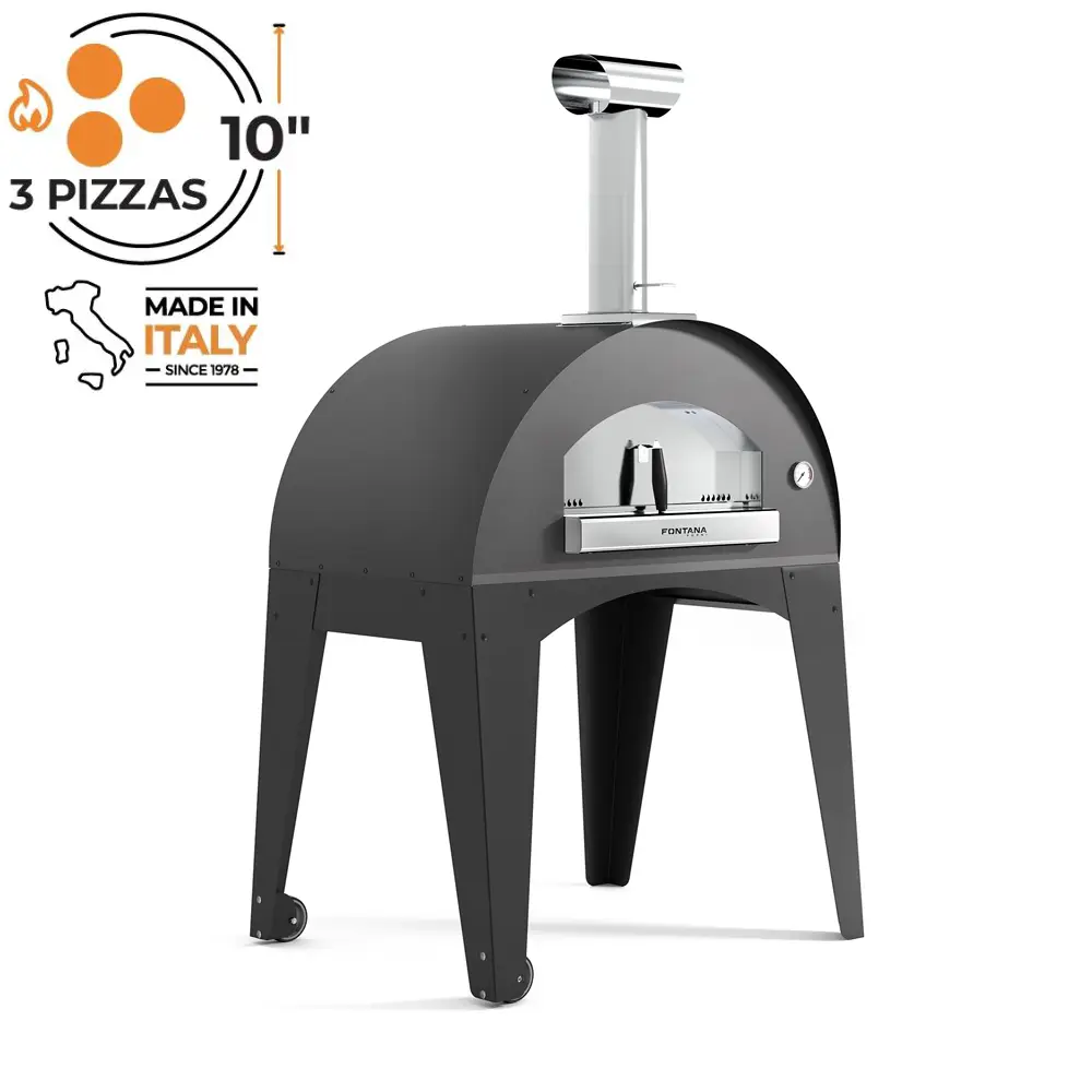 This Amalfi Wood Fired Pizza Oven has a 80×50 cm cooking chamber. It has a practical painted steel trolley with wheels. Also provided with the oven is a wood-holder plate, flue pipe with adjustable smoke exit valve and chimney top. It has a closing door for the cooking chamber. The fire surface is made of high quality refractory chamotte. Perfect for food use. Furthermore, the internal structure is in stainless steel with paints that withstand high temperatures for the maximum resistance to heat, weather and rust. In addition, the cooking chamber consists of natural rock wool which allows to maintain temperature more efficiently and to avoid that the external structure becomes to hot.