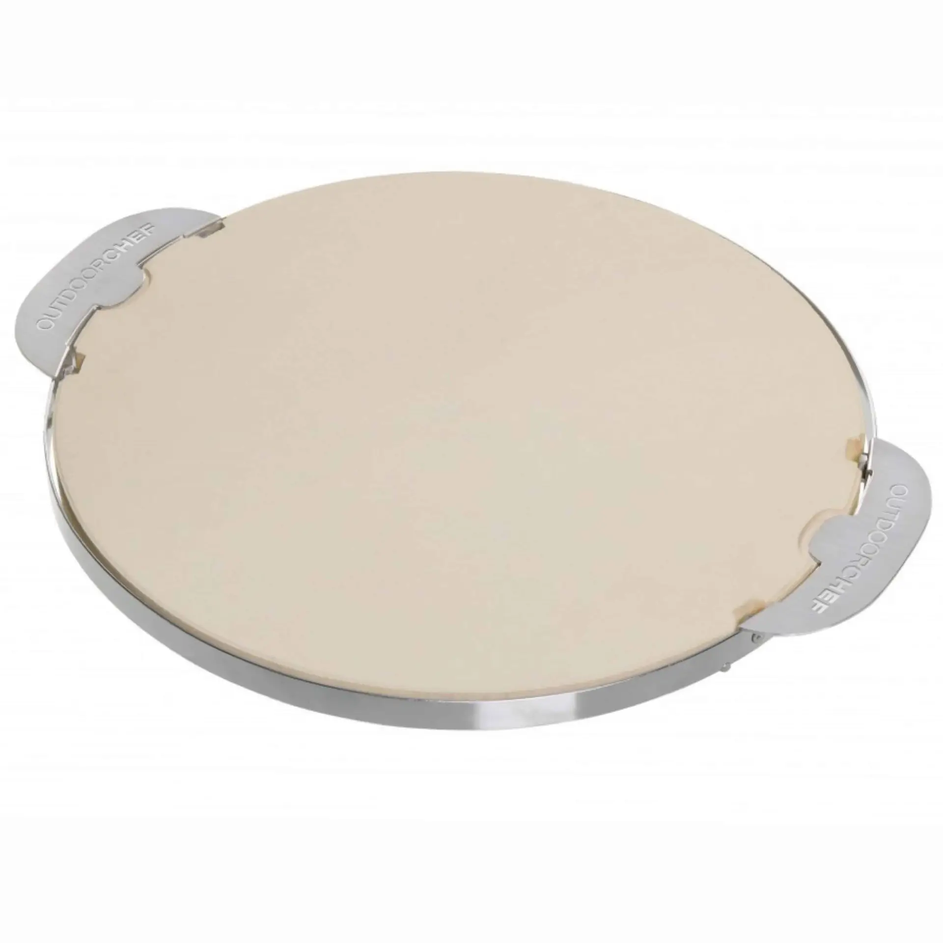 Want to create the perfect crispy pizza, Bread or tarte flambée? The pizza stone from Outdoorchef will do just that . The premium stone porous surface absorbs moisture from the dough to produce a beautifully crisp base. Stainless steel frame with ergonomic handles. No need to buy a pizza oven when you can just buy a plate and get the same results form you Outdoorchef.