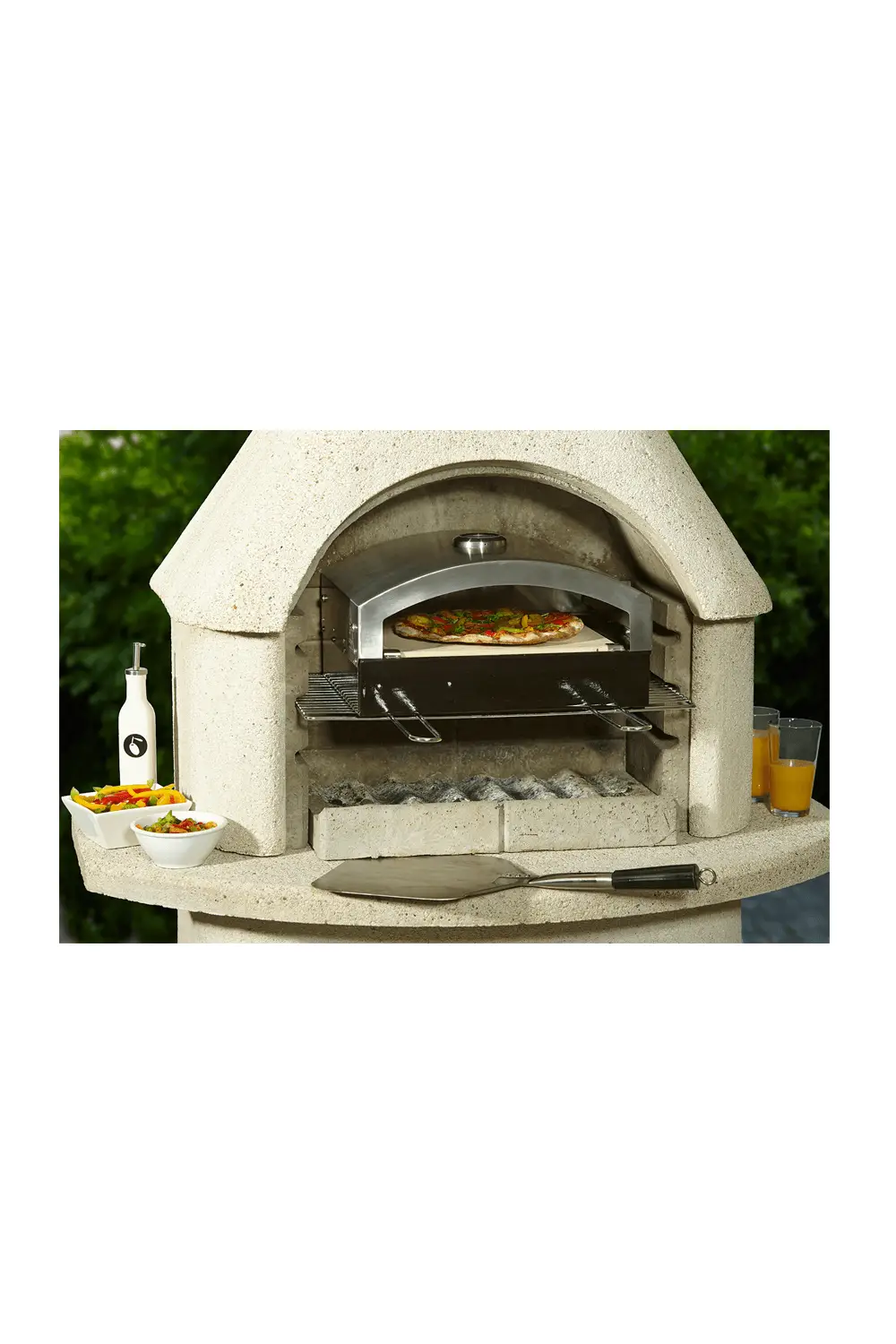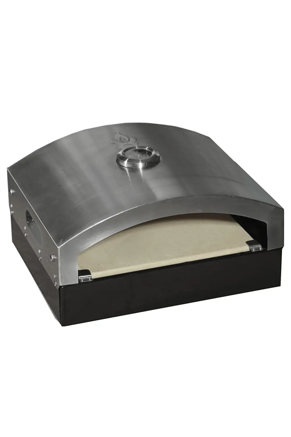 The Buschbeck Pizza Oven is manufactured from a combination of tough enamelled steel and stainless steel and features a high performance ceramic bakerstone. Insert the pizza oven into your Buschbeck barbecue whenever you want to bake pizzas, bread or even cakes. This authentically artisan-styled oven is really that good! Ensure the oven and the ceramic bakerstone is up to temperature using either the Buschbeck gas insert or over a traditional wood or charcoal fire and then get baking! The ceramic bakerstone will give your pizza bases, bread and cakes with that very authentic traditional oven baked taste and texture which will amaze your friends and family.